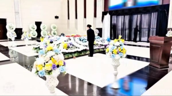 在告别厅,白色与淡色的鲜花被巧妙搭配在一起,营造出肃穆又不失温情的氛围,大屏幕上循环播放着这位年轻先生生前的影像,每一个画面都承载着亲友的思念。